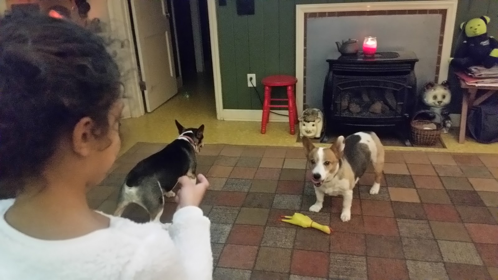 She has 2 corgis.