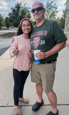 Isabella had VBS this month too! She's been busy! (a couple of days while she was there, I went to a teacher conference on STEM / AI) The 1st 3 days, she WILLINGLY WENT -- which is not normal! The 4th day - she didn't want to do the water activity, but she still went. Whew! So glad she stuck it through. This is her last time to go as a participant. (I only see one photo with her - back of head - wearing bright headband.) She probably won't volunteer during youth because she doesn't like little kids. She loved one activity in particular: making scented salt scrubs. She has exfoliated Todd's elbow several times with it. ha!