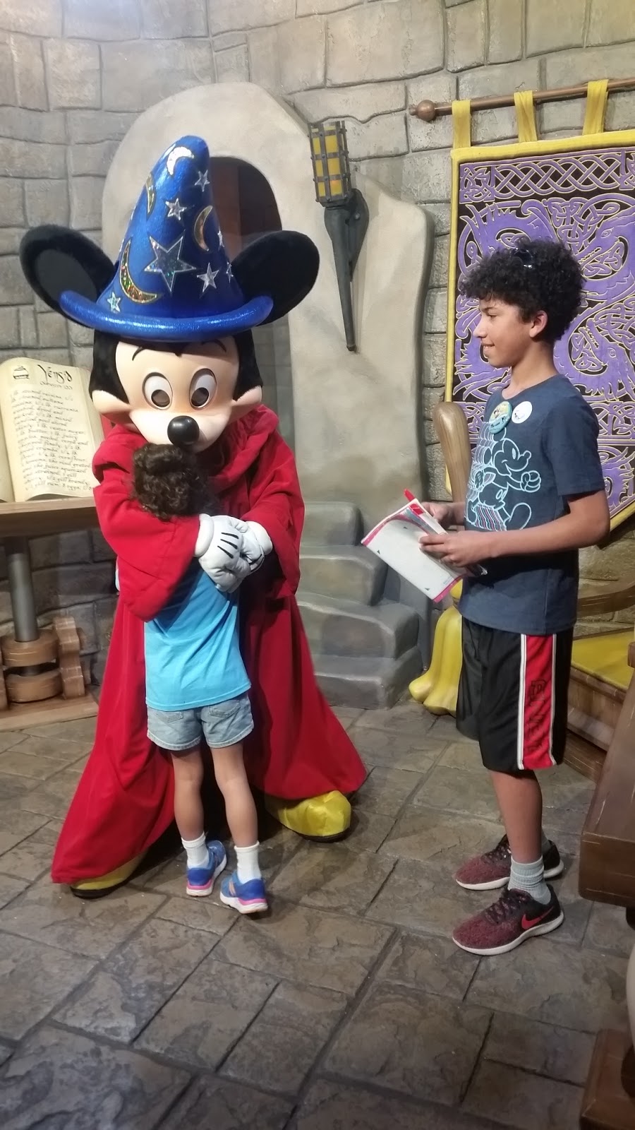The rides were mostly in the Toy Story area / we stood in long lines for the couple of rides we actually got to go on. At this park, the kids wanted to meet different characters. Mercer met his hero: Goofy.